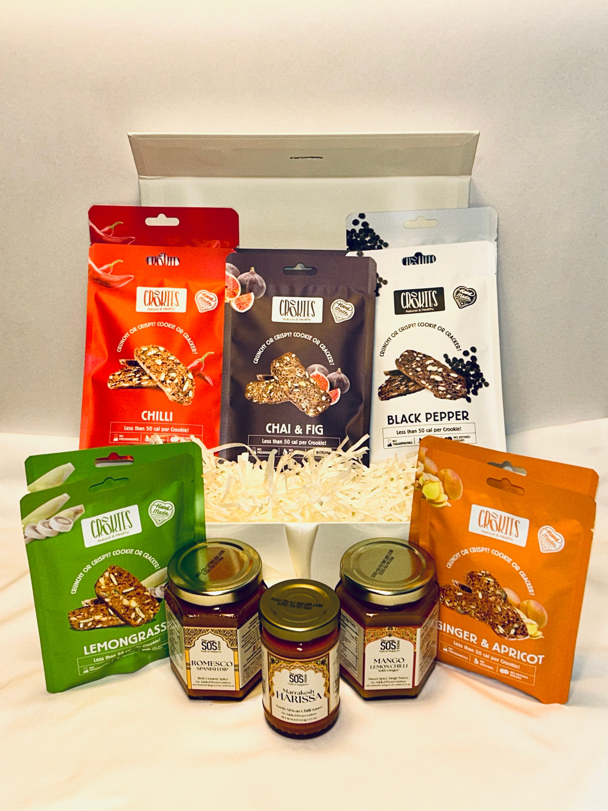 Take your taste buds on a global adventure with our World Flavours Crookies Variety Pack, featuring 10 packs of handcrafted snacks like Chilli, Black Pepper, Chai & Fig, Lemongrass, and Ginger & Apricot. Each Crookie offers a unique blend of bold spices and natural ingredients, delivering the perfect balance of heat, sweetness, and savoury notes. Whether enjoyed solo or paired with your favourite dips, these Crookies promise a wholesome and satisfying crunch in every bite.